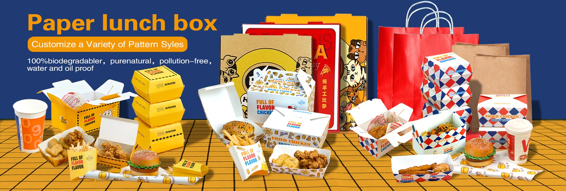 تصميم مجاني من المصنع لمجموعة بطاطس برغر الدجاج المقلي المحمولة للاستعمال مرة واحدة لتعبئة الطعام في المطاعم